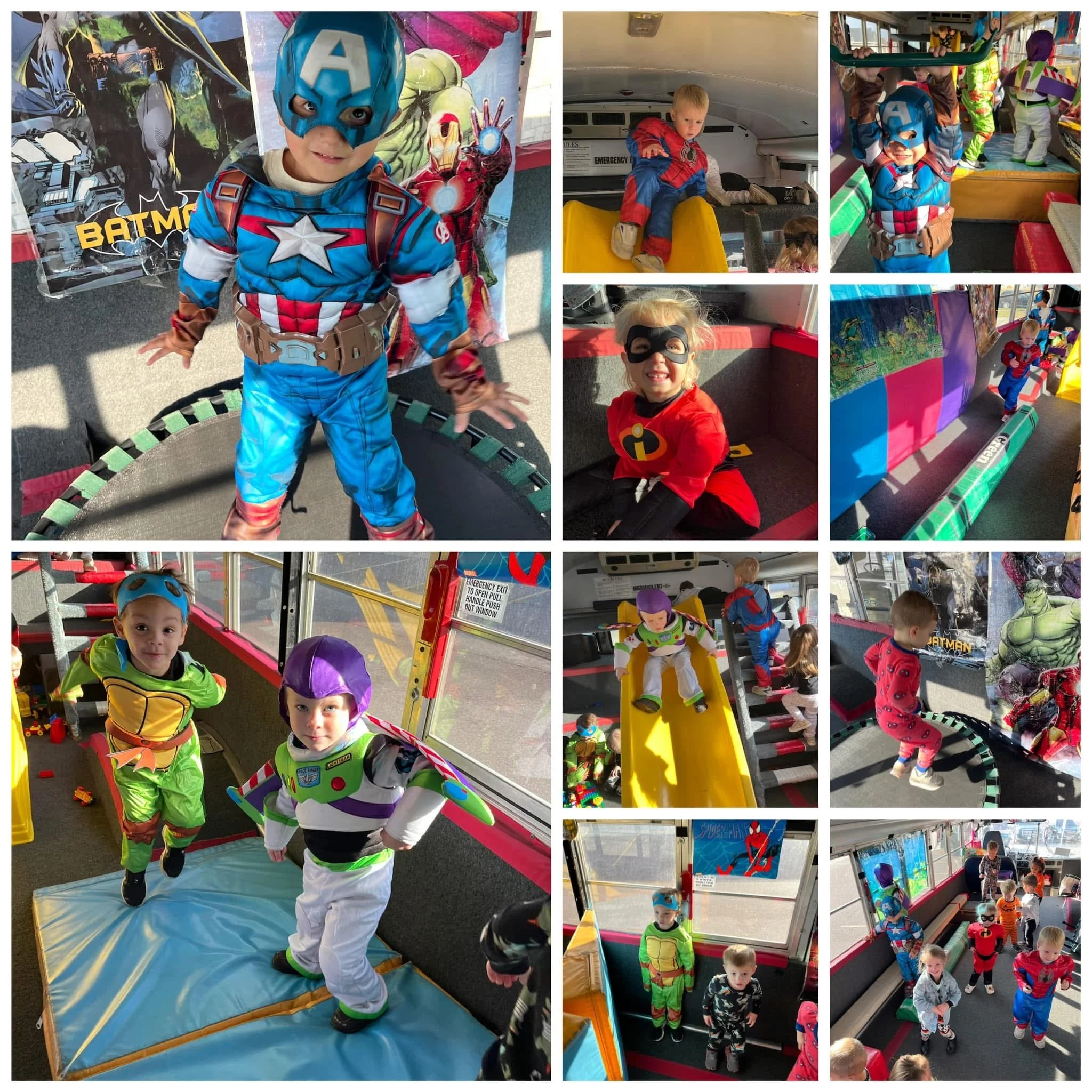 We drive our “gym” right to your daycare, for a 30-minute tumbling class each week and the bus is decorated with a new theme. Your “Superstar” will also learn educational concepts, core strength, and motor skills throughout the year.